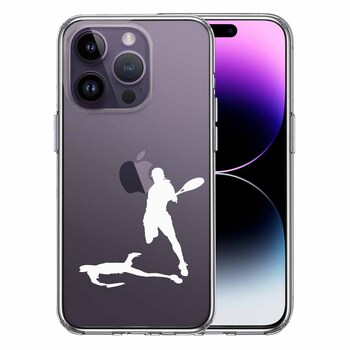 iPhone14Pro ケース クリアテニス スマッシュ ホワイト スマホケース 側面ソフト 背面ハード ハイブリッド 送料無料