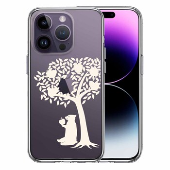 iPhone14Pro ケース クリアリンゴ食べるクマ ホワイト スマホケース 側面ソフト 背面ハード ハイブリッド 送料無料