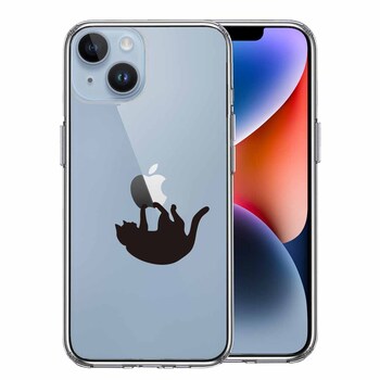 iPhone14Plus ケース クリアぶらさがりネコ スマホケース 側面ソフト 背面ハード ハイブリッド
