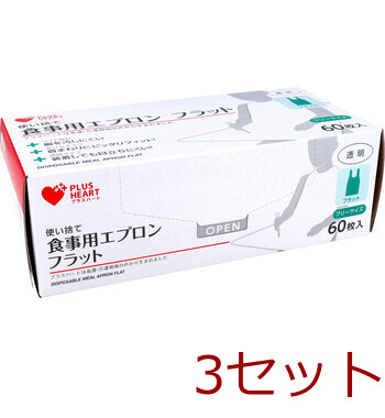 プラスハート 使い捨て食事用エプロン フラット透明 フリーサイズ 60枚入 3セット 送料無料