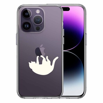 iPhone14Pro ケース クリアぶらさがりネコ ホワイ