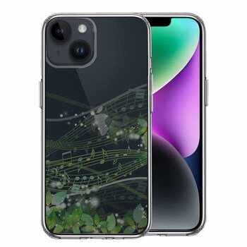 iPhone14Plus ケース クリア癒しの森 音符 デザイン スマホケース 側面ソフト 背面ハード ハイブリッド 送料無料