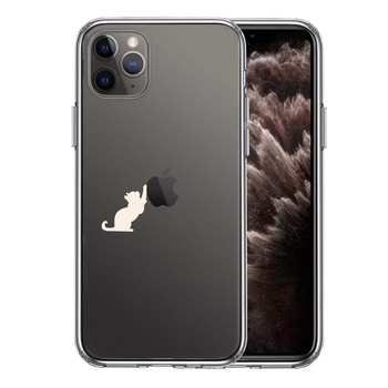 iPhone11 ケース クリア 猫 リンゴ キャッチ ホワイト スマホケース 側面ソフト 背面ハード ハイブリッド