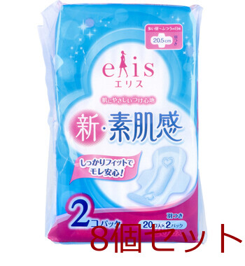 エリス 新 素肌感 多い昼-ふつうの日用 羽つき 20枚×2個パック 8セット 送料無料
