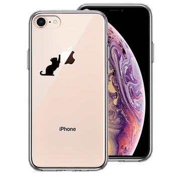 iPhone8 iPhone7 ケース クリア 猫 リンゴ キャッチ スマホケース 側面ソフト 背面ハード ハイブリッド 送料無料