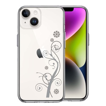 iPhone14Plus ケース クリアフローラル つる模様 グレー スマホケース 側面ソフト 背面ハード ハイブリッド 送料無料