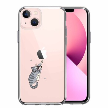 iPhone13mini ケース クリアにゃんこ 猫 ねこ しましま スマホケース 側面ソフト 背面ハード ハイブリッド