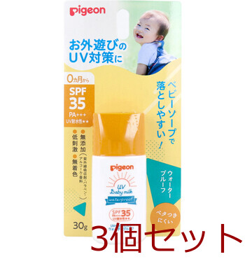 ピジョン UVベビーミルク ウォータープルーフ SPF35 PA+++ 30g 3個セット 送料無料
