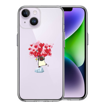 iPhone14Plus ケース クリア ペンギン ハート いっぱい スマホケース 側面ソフト 背面ハード ハイブリッド 送料無料