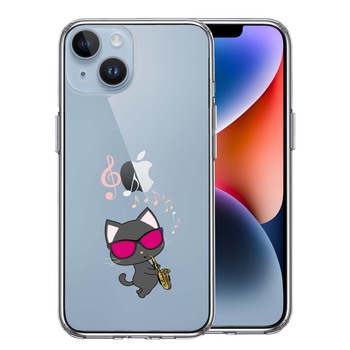 iPhone13 ケース クリアサックス ねこ スマホケース 側面ソフト 背面ハード ハイブリッド
