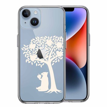 iPhone14 ケース クリア リンゴ食べるクマ ホワイト