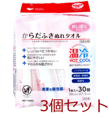 プラスハート からだふきぬれタオル おしぼりサイズ 1枚入×30個 3セット 送料無料