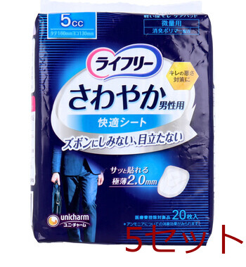 ライフリー さわやか男性用快適シート 5cc 微量用 20枚入 5セット 送料無料