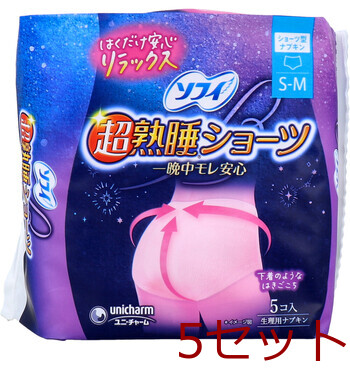 ソフィ 超熟睡ショーツ ショーツ型ナプキン 特に多い夜用 S Mサイズ ピンク 5個入 5セット 送料無料