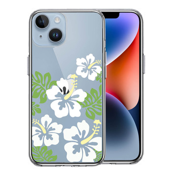 iPhone14Plus ケース クリア ハイビスカス ホワイト スマホケース 側面ソフト 背面ハード ハイブリッド 送料無料