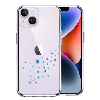 iPhone14Plus ケース クリア 流れ星 ブルー スマホケース 側面ソフト 背面ハード ハイブリッド