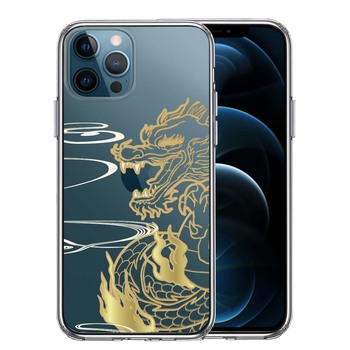 iPhone12Pro ケース クリア 龍 竜 ドラゴン ゴールド スマホケース 側面ソフト 背面ハード ハイブリッド 送料無料