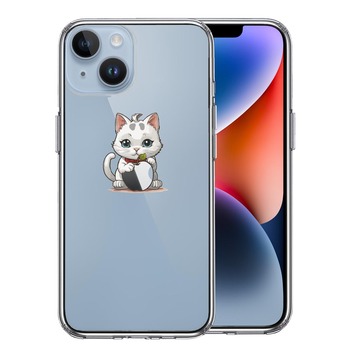 iPhone14Plus ケース クリア にゃんこ りんご なでなで スマホケース 側面ソフト 背面ハード ハイブリッド