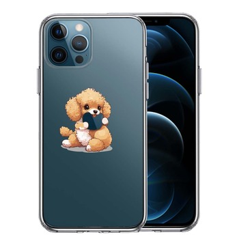iPhone12Pro ケース クリア トイプードル りんご もぐもぐ スマホケース 側面ソフト 背面ハード ハイブリッド 送料無料