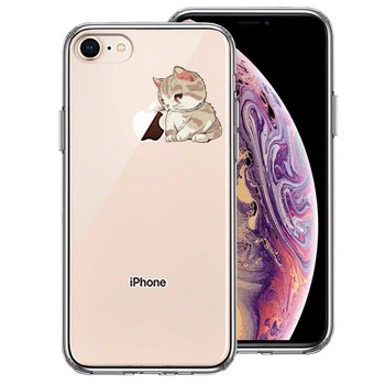 iPhone8 ケース クリア にゃんこ りんご にらめっこ スマホケース 側面ソフト 背面ハード ハイブリッド 送料無料