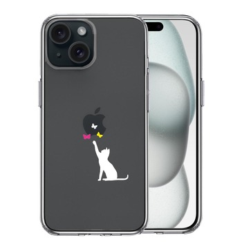 iPhone15Plus ケース クリア 猫 CAT ねこ 蝶々 ホワイト スマホケース 側面ソフト 背面ハード ハイブリッド 送料無料