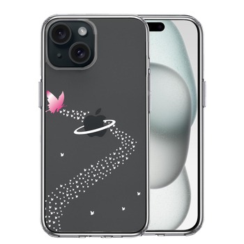 iPhone15Plus ケース クリア 蝶 チョウ 蝶々 天の川 スマホケース 側面ソフト 背面ハード ハイブリッド 送料無料