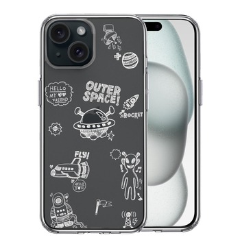 iPhone15Plus ケース クリア UFO 宇宙人 ホワイト スマホケース 側面ソフト 背面ハード ハイブリッド
