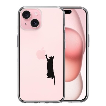 iPhone15Plus ケース クリア 猫 にゃんこ 玉遊び ブラック スマホケース 側面ソフト 背面ハード ハイブリッド