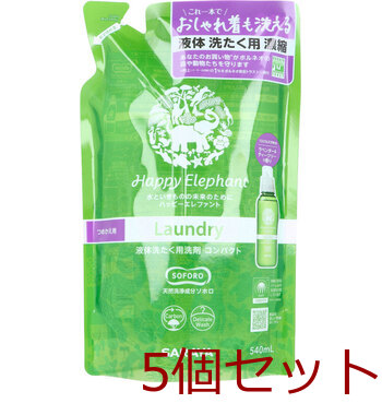 ハッピーエレファント 液体洗たく用洗剤 コンパクト ラベンダー&ティーツリー 詰替用 540mL 5個セット 送料無料