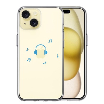 iPhone15 ケース クリア ヘッドフォン ヘッドホン ブルー スマホケース 側面ソフト 背面ハード ハイブリッド