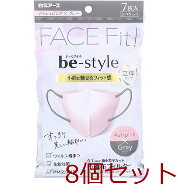 ビースタイル 立体タイプ ふつうサイズ アッシュピンク×グレー 7枚入 8セット 送料無料