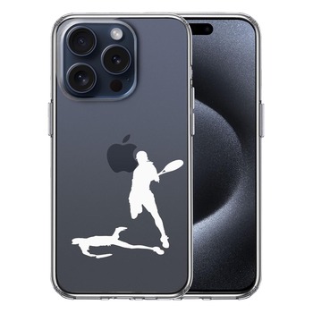 iPhone15Pro ケース クリア テニス スマッシュ ホワイト スマホケース 側面ソフト 背面ハード ハイブリッド 送料無料