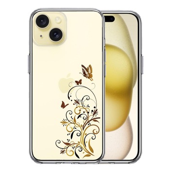 iPhone15Plus ケース クリア フローラル バタフライ (ブラウン) スマホケース 側面ソフト 背面ハード ハイブリッド