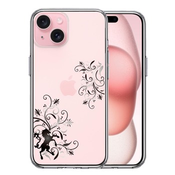 iPhone15Plus ケース クリア フローラル ユニコーン グレー スマホケース 側面ソフト 背面ハード ハイブリッド 送料無料
