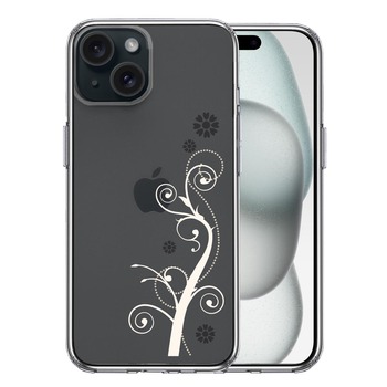 iPhone15Plus ケース クリア フローラル つる模様 ホワイト スマホケース 側面ソフト 背面ハード ハイブリッド 送料無料