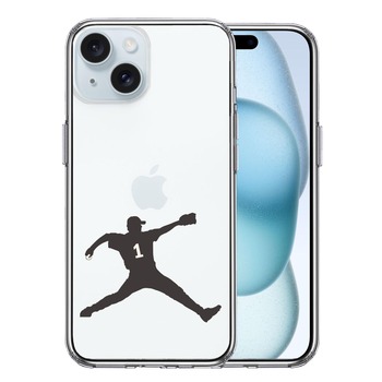 iPhone15Plus ケース クリア 野球 ピッチャー 背中 スマホケース 側面ソフト 背面ハード ハイブリッド