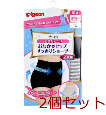 ピジョン 産後はくだけ おなか+ヒップすっきりショーツ グレー&ブラック Lサイズ 2枚組 2個セット 送料無料