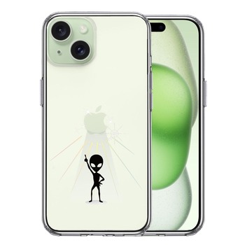 iPhone15 ケース クリア 宇宙人 フィーバー ブラック スマホケース 側面ソフト 背面ハード ハイブリッド 送料無料