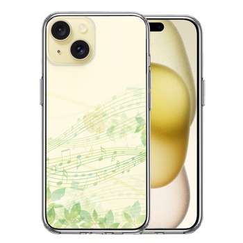 iPhone15Plus ケース クリア 癒しの森 音符 デザイン スマホケース 側面ソフト 背面ハード ハイブリッド