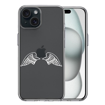 iPhone15Plus ケース クリア エンジェル 翼ウィング 白 スマホケース 側面ソフト 背面ハード ハイブリッド