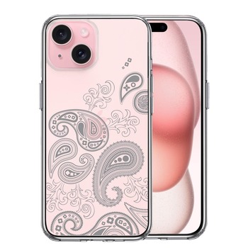 iPhone15 ケース クリア ペイズリー 柄 グレイ ス