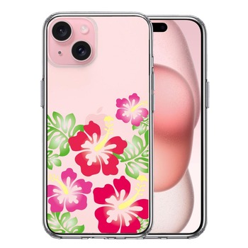iPhone15Plus ケース クリア ハイビスカス レッド スマホケース 側面ソフト 背面ハード ハイブリッド 送料無料