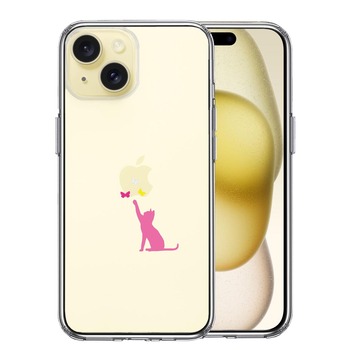 iPhone15 ケース クリア 猫 CAT ねこ にゃんこ 蝶々 ピンク スマホケース 側面ソフト 背面ハード ハイブリッド