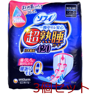 ソフィ 超熟睡ガード420 ふんわり安心タイプ 特に多い夜用 羽つき 42cm 16個入 3セット 送料無料