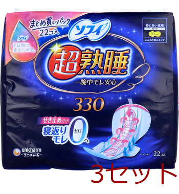 ソフィ 超熟睡 330 ふんわり安心タイプ 特に多い夜用 羽つき 33cm 22個入 3セット 送料無料
