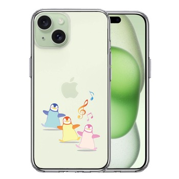iPhone15 ケース クリア ペンギン 音楽 スマホケース 側面ソフト 背面ハード ハイブリッド
