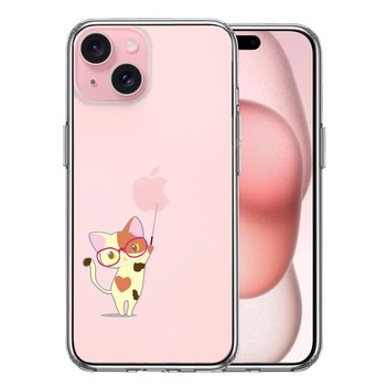 iPhone15Plus ケース クリア ジャケット 三毛猫 メガネ スマホケース 側面ソフト 背面ハード ハイブリッド
