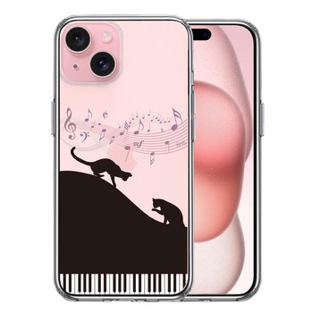 iPhone15 ケース クリア ピアノ シルエット猫 ブラ