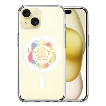 iPhone15 MagSafe対応 ケース クリア サッカーボール カラー スマホケース 側面ソフト 背面ハード ハイブリッド 送料無料