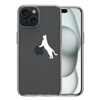 iPhone15Plus ケース クリア ねこ 猫 リンゴで伸び ホワイト スマホケース 側面ソフト 背面ハード ハイブリッド